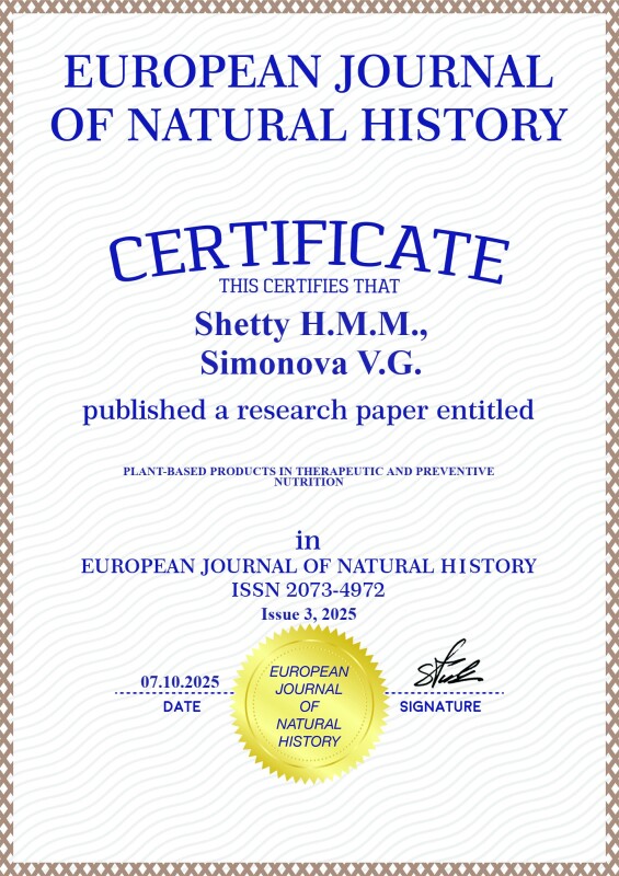 Shetty H.M.M., Simonova V.G. PLANT-BASED PRODUCTS IN THERAPEUTIC AND PREVENTIVE NUTRITION // European Journal of Natural History. 2025. № 3. С. 8-15;URL: https://world-science.ru/ru/article/view?id=34421 (дата обращения: 07.10.2025).
